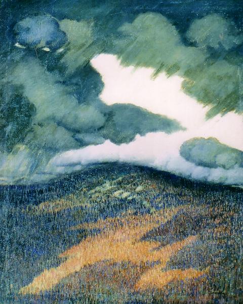 One of my favorites from that time is Marsden Hartley, a Maine-born painter. I’ve always been attracted to a series of collage-like paintings he executed that are painted on a black ground, such as the one above, Portrait of a German Officer. I love the way he puts his forms and colors together in these pieces, giving them a real visual impact. His landscapes, such as Storm Clouds shown here, have that organic feel that I really like and look for in my own work. By that, I mean that his shapes have a natural, human-like roll and feel. I can’t really describe this well.