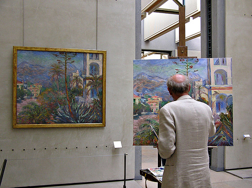 The problem of copying other people’s work is that, while one can try to emulate composition, strokes, texture and color, there is no way of copying the intent and mindset behind the original. Or the rhythm of the actual physical act of the original artist. Basing one’s work solely on the work of another reduces that person to the level of a musician playing in a cover band, playing the hits of others. That’s fine and dandy, if that is this person’s only aspiration but most people turn to art because they feel a need for self-expression, to create something that says who and what they are.