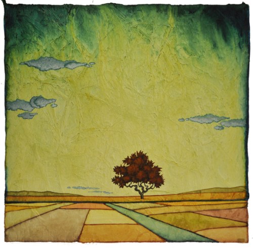 The piece shown here is indicative of this work. I call this piece The Past Returns and it is 18″ by 18″ on treated cotton rag paper. This piece to me is very much an homage to the first Red Tree paintings in color and form.