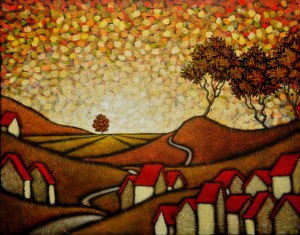 Maybe it’s the distance between the houses in the foreground and the single tree in the distance but I am reminded of the vision quests of many indigenous people in many lands, a rite of passage where a young person of the tribe is sent alone into the wilderness, with the idea that the isolation and the deprivations (fasting is often part of the ritual) will attune them to their true self and their place in the natural world. This quest is similar to those taken by the tribesmen who have been called forth as shamans although their journey is often enhanced by hallucinogens.