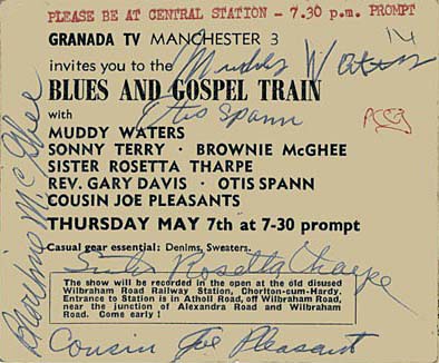 So, iinstead I’ll show a neat clip from a BBC broadcast from 1964 that showed a concert from the Blues and Gospel Train, a tour that stormed through Britain featuring American blues and gospel greats such as Muddy Waters, Sonny Terry and Rev. Gary Davis. The special had a huge broadcast audience and was a big influence on the young there.