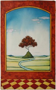 This painting shown on the left, In the Window: Dream Away, was the first piece. It seemed to jump off the paper on which it was painted. Very vibrant. The setting of the window pushed the scene of the tree atop the mound overlooking the water out of the frame and seemed to intensify it. I was immediately taken with the concept and a number of others soon followed, including the one at the top. These pieces sold pretty well but they eventually lost steam for me from a creative standpoint. While I still felt that they were vibrant , I sensed that I had done as much as I could with the concept and didn’t want it to become labored and tired. My excitement was passing and I wanted to stop near a peak rather than at a low when the work was completely played out when I was viewing it as a toil rather than a joyous activity.