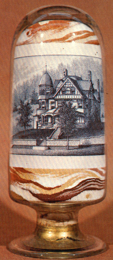 I was really amazed when I first came across these items and their back story only makes them more intriguing to me. They are bottles of sand where different colored grains of sand are manipulated, without use of glues or any bonding agents, to create highly detailed images and patterns. These were created by Andrew Clemens who lived in Iowa and died in 1894 at the age of 37.