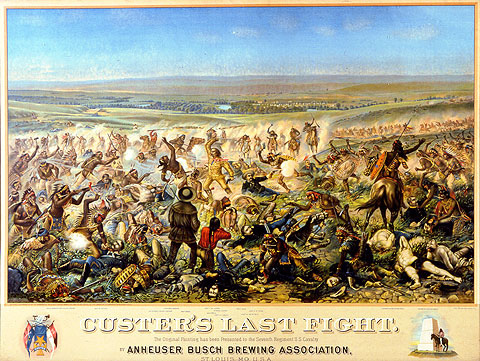 His legend was also enhanced by a bit of advertising art from Anheuser Busch who issued a print heroically depicting the battle in a way that most historians agree is extemely erroneous. The print hung in saloons all through the states for decades and just added to the mythic quality of the man and the battle.