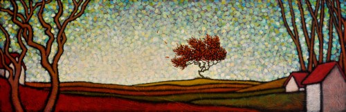 And that’s what I see in this painting. The crops are planted for the future. The road brings us from the past to this point. And the tree under the golden sky represents us taking it all in at the present time. Balance in the world, balance in time.