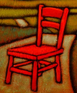 At last week’s gallery talk at the West End Gallery, I was asked what meaning the Red Chair that is a part of some of my paintings held. It’s a question that I get often but is one for which I have no pat answer. I described how it came to be in my work and how it had evolved in meaning to what I now see it as now.