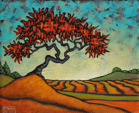 As they often do in my paintings, the fields of alternating rows of color represent the act of labor.  The day-to-day sort of work of the people who toil every day with little if any recognition, trying to merely live their lives.  They raise their kids, they pay their bills and they simply try to just get along without bothering anyone or being bothered.