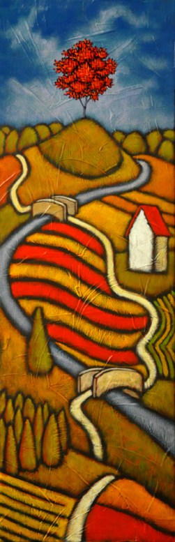 And then there are the series I’ve done through the years. Obviously, the ubiquitous Red Tree. But there is also the Red Roofs. Red Chairs. Archaeology. And many other less organized, recurrent groups of work featuring sailboats, cityscapes and small, lone figures. Or the other figurative work featuring what I call the Outlaws or the early Exiles. How many of these pieces fall into the category of rounding out an overview of the work?