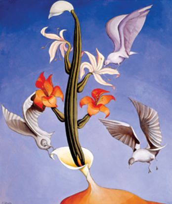 It turned out that the mother was a painter as well who lived, for the time being, in our area. Her name was Suzi Druley and she was on their way out to a gallery that sold a lot of her work in Erie, Pennsylvania. They had me run out to their vehicle to take a look at her work, which was very interesting, particularly for our area. It had a sort of Southwestern/Native American feel with with vivid, deep colors and a lot of symbology. Turns out she was from Texas originally and they had moved here for a job her husband had taken. She asked what my work was like, saying she would like to see it.