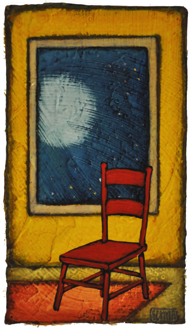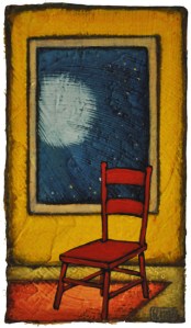 The title refers to an inner journey of discovery. The Red Chair is facing symbolically inward, away from the broad expanse of night sky with the moon and stars, which represents the reference points by which the ancients guided their travels. But there are things in this world that can’t be found in all the lengthy expeditions in this world, things that must be first uncovered within ourselves. Wisdom. Love. These are not things that cannot be discovered in any outer travel unless one first looks inward. It is sometimes easier to seek the external simply because traveling inward is the scariest trip that many of us will ever face. It’s not an easy thing to face the absolute truth about our own reality, to stare down our own flaws and shortcomings.