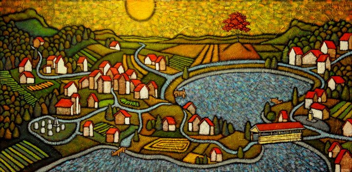 There was a piece that I featured a few weeks back as a work in progress. It is a 24″ by 48″ painting that I have decided to call Game of Life. I thought it was strong piece at the time and have nothing that swayed my opinion since, looking at it on a daily basis in the studio. But yesterday, as I was framing several pieces, the painting was laying on a table and from my vantage point it appeared upside down to me. I kept coming back to it with my gaze , noting how well the piece kept together in an almost abstract manner with the balance of the painting’s elements still strong.