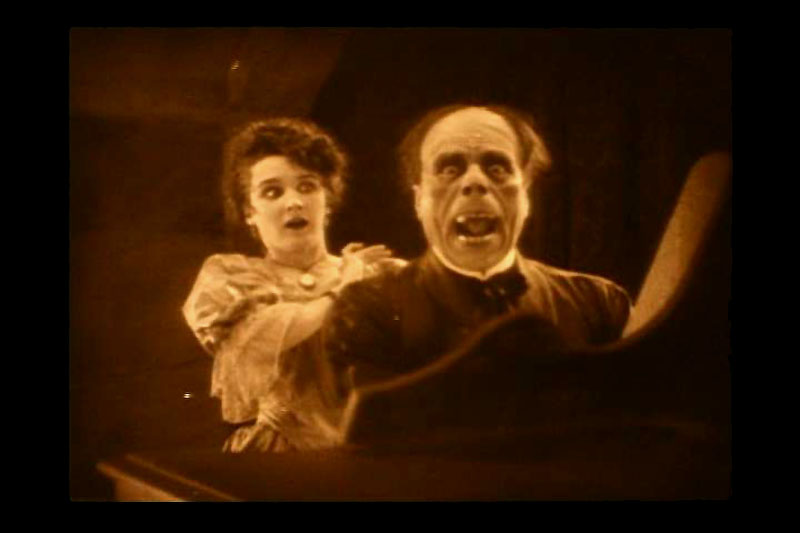 The organ’s grand sound really added a wonderful dimension to the film, bringing life to the sometimes exaggerated pantomime of the actors. If you’ve seen many silent films, you’re familiar with this style of acting though I believe this film is a little over the top with its frantic gestures and grasping of the neck in fear. As you can probably detect, this is not one of my favorite films from the great Lon Chaney who starred as the Phantom who haunts the Paris Opera House, although he delivers a strong and compelling performance here. I found myself identifying more with his character than the wooden stiffs who played the so-called good guys in the film. So much so that at the end when the mob captures the Phantom, beating and throwing him into the Seine as the audience cheered their approval, I felt a real twinge of sympathy for his character.
