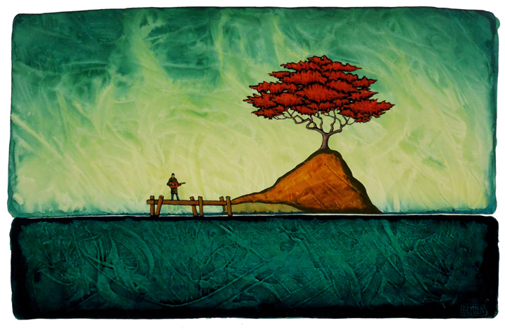 The piece shown here, Stepping Up, is part of the show at the West End Gallery. It is 6″ by 26″ on paper. The show was being hung yesterday evening so if you would like a preview, stop in this weekend.