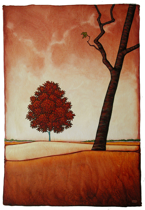 You see, there are so many variables in my painting technique at different times that sometimes the actual process can be much longer or shorter on any given painting. Sometimes I can toil over a piece, every bit of the process requiring time and thought. There may be much time spent just looking at the piece trying to figure out where the next line or stroke goes, trying to weigh each move. Then there are times when the painting drops out effortlessly and I’ll look up after a very short time and realize that it’s almost complete. Any more moves from me and the piece would be diminished.