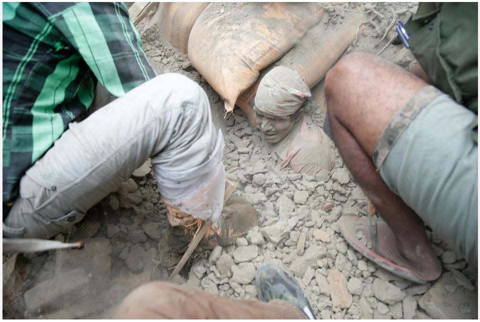 Nepalese man Trapped in Rubble Photo by Narandra ShrestaIt’s been heartbreaking to see the tragedy taking place in Nepal as a result of a massive 7.8 earthquake and subsequent huge aftershocks that rocked this Himalayan nation over the weekend. I’ve never been to Nepal and there is a good chance that I may never see it but I feel a small connection to this distant nation through my work, which hung in the American Embassy in Kathmandu for several years.  Plus, I have met a number of folks who have been there and they always speak of their experiences there in glowing terms.