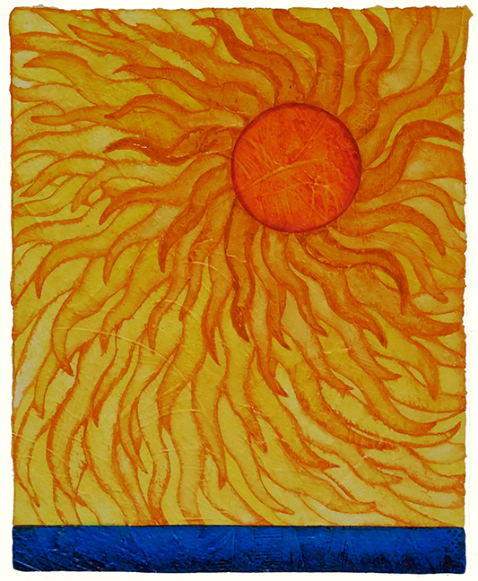 I want the selection to matter. This year’s selection is definitely in this vein. Shown above, it is titled Living Flame and is a 10″ by 18″ painting on paper. It is under glass inside an 18″ by 26″ frame so it has some size. It is painted very much in the style on which my body of work was formed with transparent washes and organic shapes, all surrounding the central figure of the Red Tree. It is airy and quiet but contemplative, a piece that in many ways could sum up much of my work.