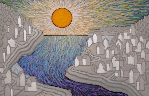 I am calling this piece, a 24″ by 36″ canvas, Flight of Angels. I take that title from that feeling that there is something hidden in there that is trying to assist me and from the shape of the space running up the river and into the sky. It has the silhouette of an angel, one that just jumps out at me. I’ve altered the image a bit in the image at the bottom of the page to better illustrate what I’m talking about.