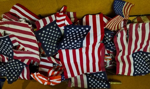 Most are faded, dirty and ripped. Some have just come detached from their dowel from the wind and the rain. And some are shredded by the mowing crews who won’t take a moment to get off their machines to pick them up before running over them. I am sure these same guys are probably having a fit that some NFL players are silently protesting by taking a knee during the playing of the national anthem.