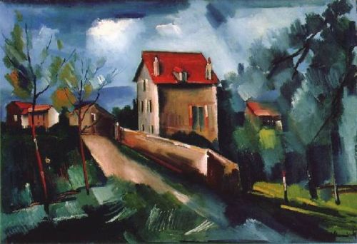 I have to admit I don’t know much about French painter Maurice de Vlaminck (vlah-mink) who lived from 1876 until 1958. His work is best known for a short period in the early years of the 20th century when he was considered one of the leading lights, along with Andre Derain and Henri Matisse, of the Fauve movement. Fauve translates as wild beast and the style of these painters was very much like that to the sensibilities of that time. It was brightly colored with brash brushwork and little attention paid to detail. It was all about expression and emotion.