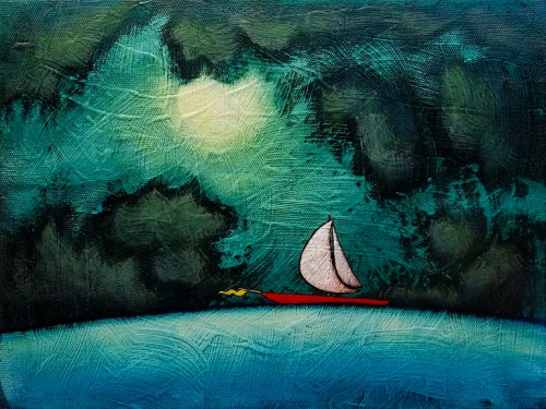 That is a fitting metaphor for how I see my life as a painter. There are many days when it seems that I am sailing in total darkness and have no idea where I am headed or if I am even moving in any direction at all. I feel small and at the mercy of the deepness of the dark and the power of the waves that push against me.