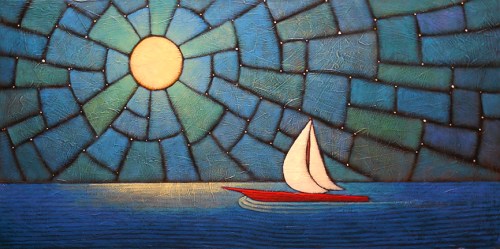 I probably can’t properly explain it but for me, it is an exhilarating process as each added form and layer of color, each poke of light from the stars, subtly transforms the piece into something more than I was expecting. It feels more complete and full than the first thoughts and brushstrokes that initiated the painting, leaving me with a giddy kind of satisfaction. I know that this has been the case thus far with each of the paintings in this series.