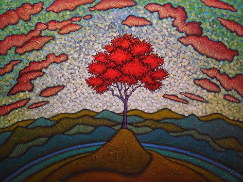 Maybe there’s a sense of optimism or empowerment in it that I find attractive, both qualities that are sorely needed in these times. Maybe it’s the sense of unity with its surroundings that the Red Tree seems to possess. Or maybe it’s the symmetry in its composition or the rhythm in the bands of hills.