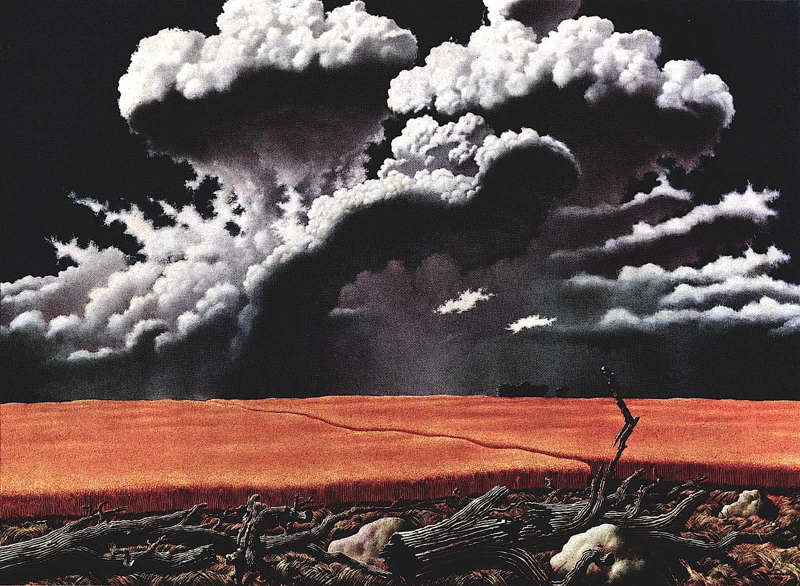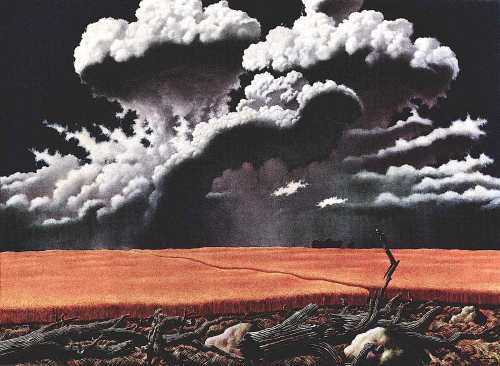 The painting at the top is his most famous work. It is titled Gray and Gold and has been at the Cleveland Museum of Art since 1943. It was painted in the aftermath of Pearl Harbor and the entry of the US into World War II. I think the symbolism in it is pretty evident so I won’t go into it here. But even without the knowledge of that symbolism, it’s a pretty potent piece.