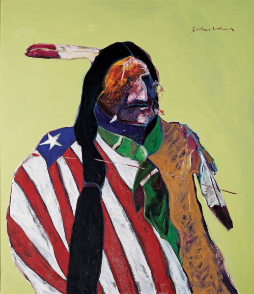 Fritz Scholder (1937-2005) was an Native American painter. I wasn’t going to use the Native part because he had claimed at one point in his career that he was not an Indian painter nor would he ever paint Indians. Much of his work adhered to that idea but his work, in many cases, definitely reflected his experience as a Native American. His work followed the modern trails of painters like Francis Bacon and Willem de Kooning but certainly expressed his personal viewpoint and experience. It’s great work that I always enjoy taking in.