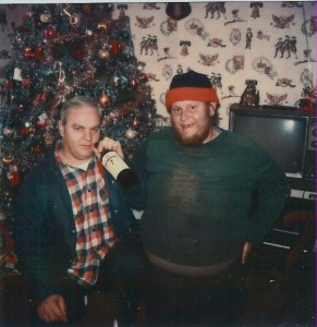 I came across this old photo from the early 70’s and was instantly sent back in time. The two gents in the shot from a Christmas season long ago are my Uncle Joey (holding the Seagrams 7 bottle– I’m not sure that he was just mugging for the camera) and Jack Reynolds, who everyone called Fat Jack , Jackboy or, as my Dad would say, Jackeee. You need to pronounce all three e’s to get the full effect.