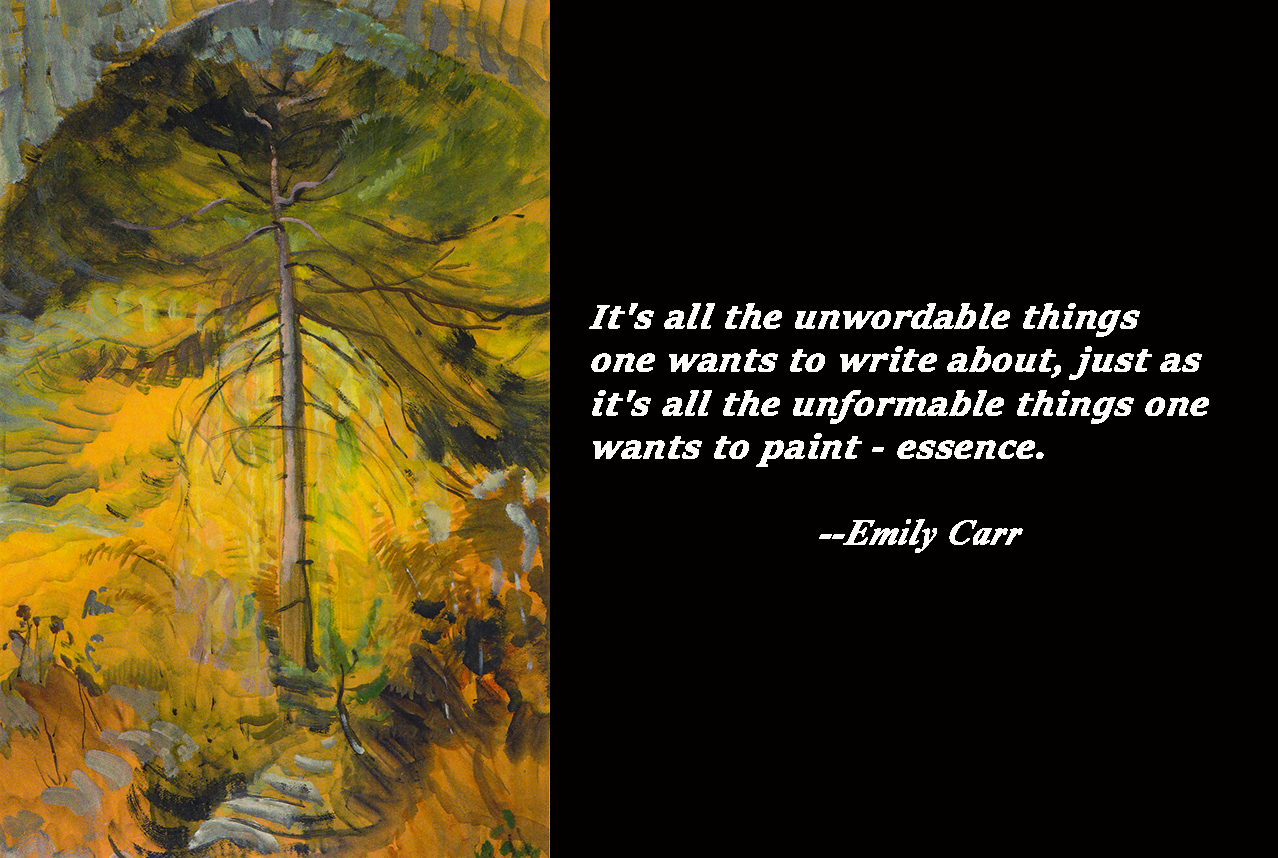I definitely see this evocation of essence in the work of Emily Carr and can only hope to find the same in my own.