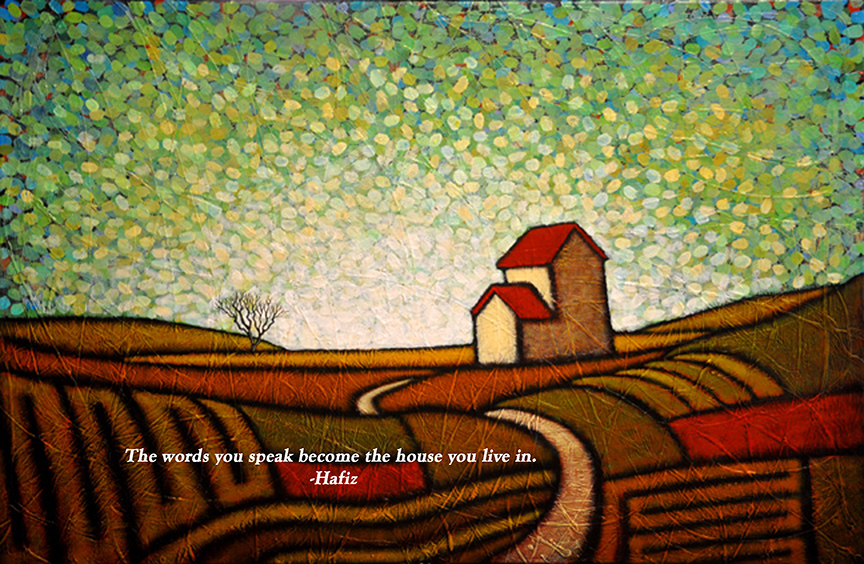 I think the 14th century Persian poet Hafiz had it right. We live in and with our words. Our words give us shape and form. Our words, as Hafiz points out, build our house.