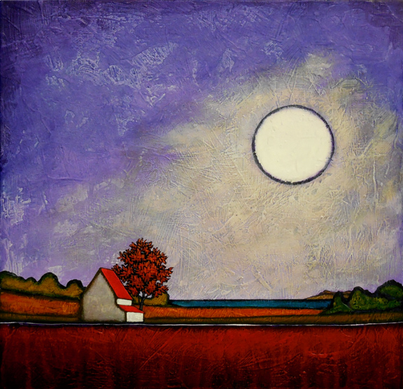 But after the realization that I should simply paint what I wanted to see, my work changed and I went from a bondage to that which existed to the freedom of what could be found in creating something new. For me, that meant finding certain colors such as the deep reds and oranges tinged with dark edges that mark this piece. It meant trying to simplify the forms of world I was portraying so that the colors and shapes collectively took on the same meditative quality that I was seeing in each of them.