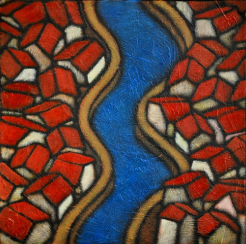 This song just feels good this morning with this painting. Maybe written by someone on one side of this blue canal. I threw in the lyrics to read along with the music.