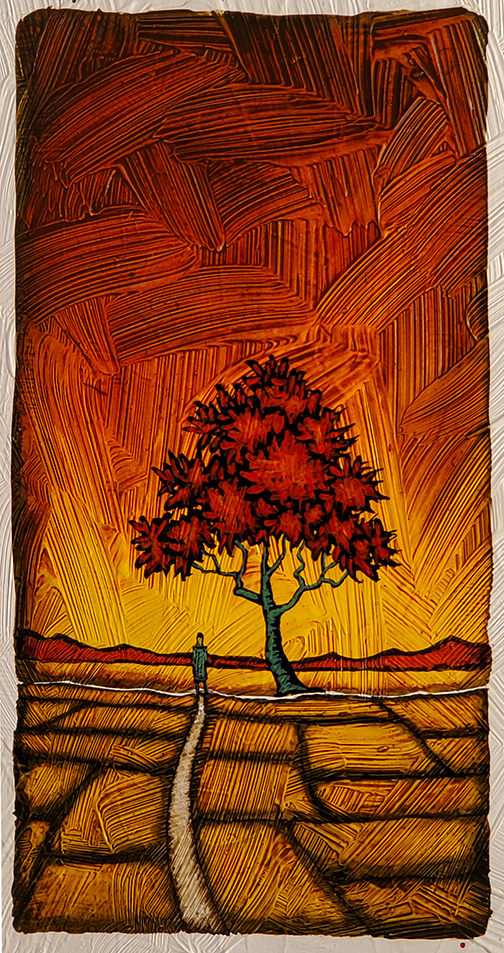 For example, the new small piece shown above is from the Little Gems show and is titled– surprise, surprise!– Lay My Burden Down. It has the feel of the end of a day of work, of looking back on what you’ve done with a mixture of pride in the job done and relief that the toil is over for at least awhile.