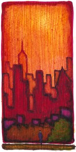 But that didn’t feel right. The nature of the tiny figure was a nagging question for me. Was it fleeing the city’s hustle and bustle? Or was it returning from the city to its home in a cooler, calmer remote place? I couldn’t answer that definitively, but I loved the ambiguity. It didn’t really matter whether the figure was seeking diversion in the heat of the city or in the cool of the country. The point I saw was that it was seeking something different, if only to provide a contrast to what it experienced every other day.
