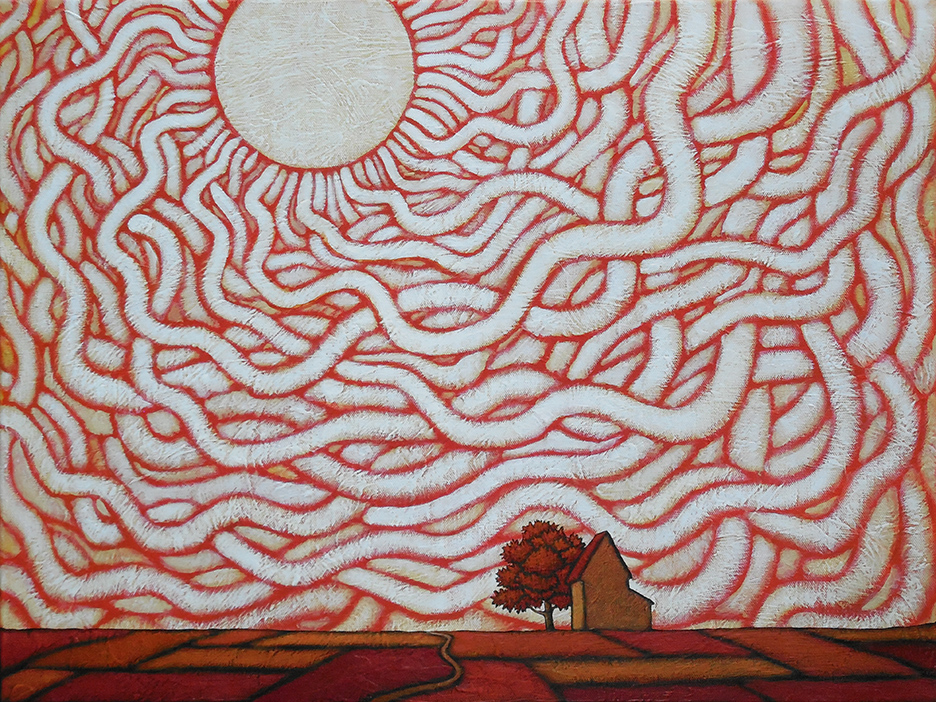 This connection and entanglement is the focus of much of the work from this year’s show. I find myself staring intently at the swirls and tangles in the skies I have painted for this show. Engrossed by its layers and shifts, I find myself sitting for a long time in front of some of these new pieces, often asking where it begins and where it ends.