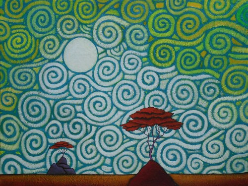 The Red Trees remind me of flowers being pulled upward by the energy and light of the sun and sky. For my botanical friends out there, I do realize they are not actually the flowers called Heliotropes. I am instead referring to heliotropism, the act of growing toward the sun that takes place in many plants and flowers. I tend to think we all experience heliotropism of some sort, always moving towards some sort of light.
