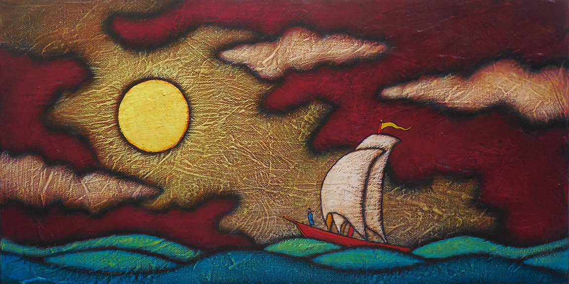 The painting, Chasing the Elusive, is 8″ by 16″ on canvas and is included in this year’s edition of my annual solo show at the West End Gallery, Guiding Light, which opens this coming Friday, October 17. The opening reception for the show runs from 5-7 PM.