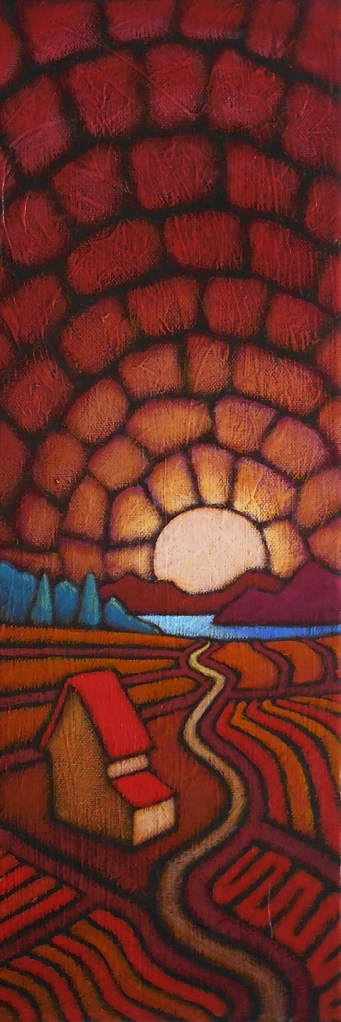 I looked for a painting of mine that fit Pound’s words and cadence, but his hard chops and ire don’t show up much in my work, at least in recent times. So, I focused on the ancient part of the poem and chose the piece above, Dusk of Time, which is in a way about the connection of all times. The same cold that drove Pound to swearing when he wrote it, and myself this morning, is that same bitter cold that probably caused the ancients to utter a profanity or two. This painting is not so much about the cold as it is about how our experiences of this world, in the end, are little different than those who lived hundreds and thousands of years before.