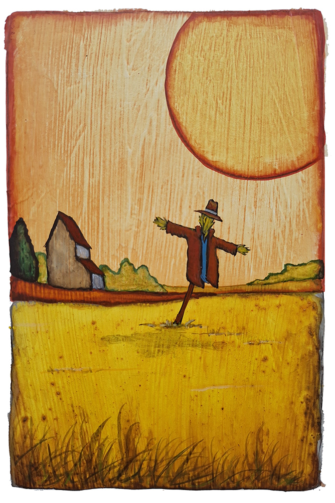 The Scarecrow is another old friend that periodically returns. I am still trying to understand what it is about scarecrows that holds my fascination. Maybe it stems from Ray Bolger‘s character in the Wizard of Oz? There’s something in that affable, kind character singing If I Only Had Brain that connected deeply with me as a kid.