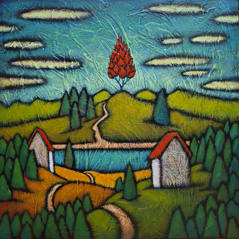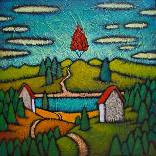 I thought this Mary Oliver poem was a good match for the new painting above, Burning Bright. Though it is slightly bigger than a Little Gem at 10″ by 10″ on wood panel, it made its way to the West End Gallery ahead of their annual Little Gems exhibit opening next Friday, February 6.