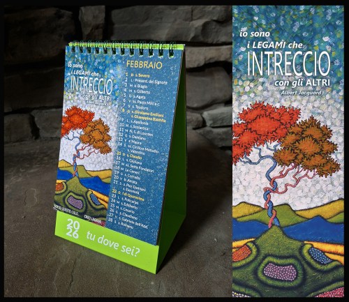 It’s a great little desk calendar whose overall theme is asked in a question gracing its cover: Under these skies, where are you? Each month’s image accompanied by an appropriate quote and a list of the feast days for that month. The first of my paintings chosen is for this month, February, and carries the title Creo Legami which translates to I create connections.