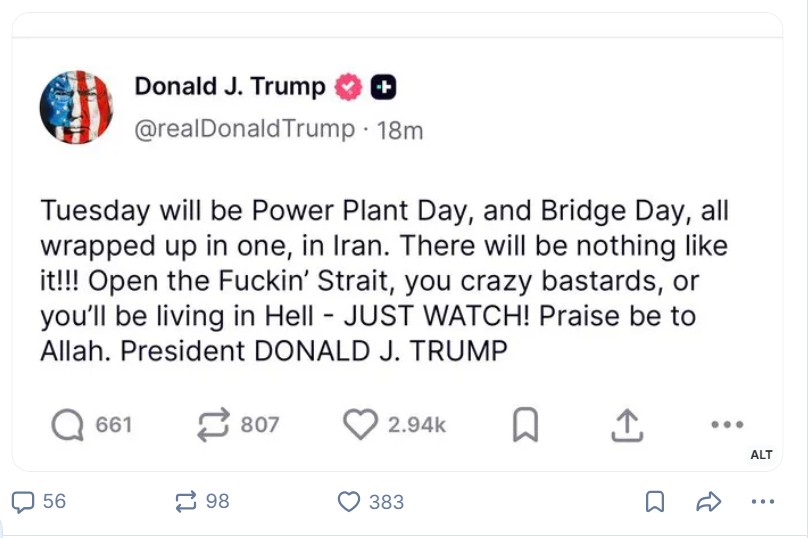 I didn’t think it was real at first. After all, it’s hard to tell the difference these days between what is real and what is not. I mean, how could any president, even one as hideous in practically every way as the current one, post this on an Easter Sunday? Or on any day, for that matter. And how could anyone reading it not come to the conclusion that this was the ranting of an absolute mad man?