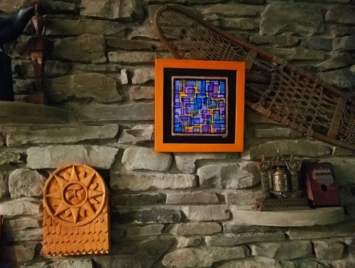 But in the center is a painting from a few years back, an abstract comprised of colorful blocks. I knew when I did this piece that it was strictly mine and wasn’t surprised that it didn’t find a home. There are several such pieces here in my main painting space. Maybe it’s the fact that I did them just for my own satisfaction that make them favorites of mine. I know this painting catches my eye several times a day and there is definitely a sense of satisfaction in each glance.