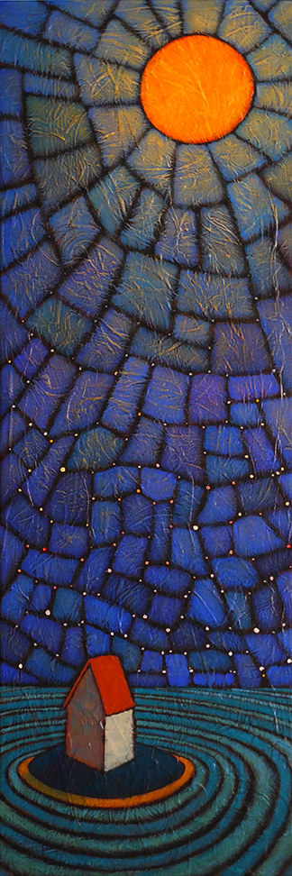 There is often an underlying texture in the work that is chaotic and discordant. The harmonies in color and form painted over these create a tension, a feeling of wholeness in the work. A feeling of finding a pattern in the chaos that makes it all seem sensible.