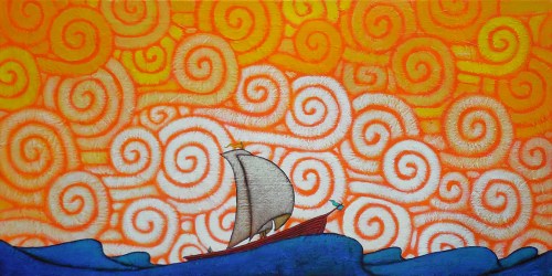 It all makes for a striking look in each piece, one that make me really stop and consider each. The skies are often the central figures in this work, as much as the boat or the Red Tree or the house, and it’s hard to not dwell on finding some sort of meaning in them. There’s an almost meditative, therapeutic feel in many of these pieces for myself, both in the painting and the viewing.