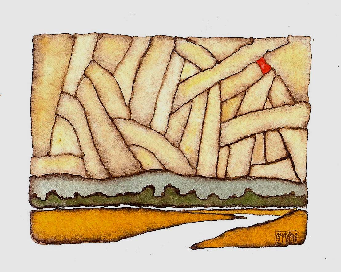 Now, I can’t say this painting fully sums up the decade for me but it may come as close any other piece I might choose. It occupies a wall in my studio now and I take moments now and then to take it in. Its size makes it an embracing piece, one that makes me feel as though I am stepping into it with the warmth of the colors and shapes wrapping around me. It’s easy to spend time in front of it and let my mind wander among the fields and hills.