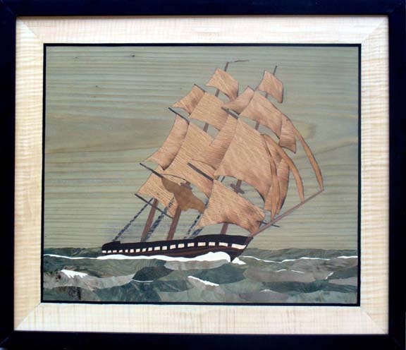 I hope to someday drop in and see some of these landscapes in wood. I hope these folks continue to find them inspiring for their own work. The image at the top is from Bill G. at Colorado Marquetry. The image below is his translation of the USS Constitution.