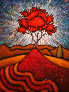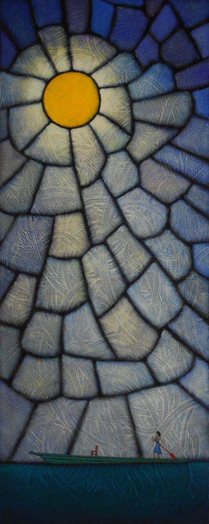 If you’re familiar with Campbell’s work, you know that the great myths, such as Homer’s Odyssey, are not the sole province of the hero’s journey. Most people, in every time and place, at some time in their lives recreate the hero’s journey. It may be on a smaller, more intimate scale. They surely will not see it as being mythic or heroic. But it is woven from the same cloth and in the same patterns of the great myths, those same patterns that I see in these paintings.