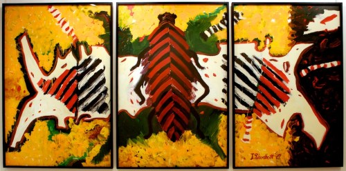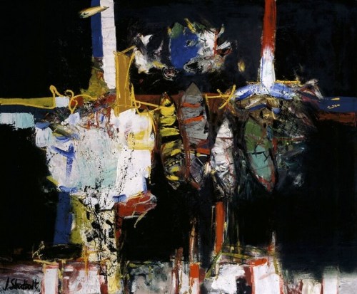 There is a good short bio of Jack Shadbolt that you can read by clicking on this link. It gives you an idea of the forces, such as his World War II experiences, and people–his friendship with iconic Canadian painter Emily Carr, for example– that shaped his work. It also makes clear the influence his work has in his homeland.